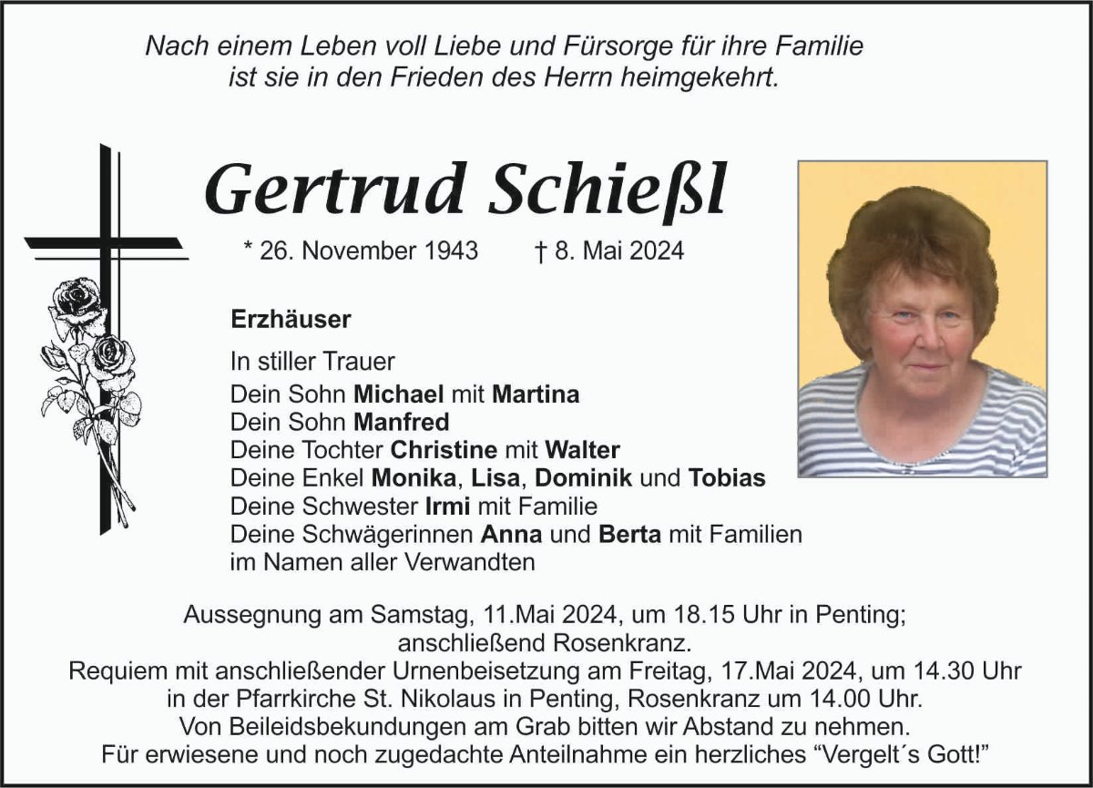 Gertraud Schießlgestorben am 8. Mai 2024